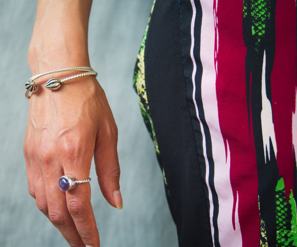 Metal & Gemstone: use the polishing cloth that Aman Itomi jewelry Collection provides to gently wipe this item clean, then remove any remaining dirt with a mild soap. Rinse item well with warm water and dry the jewelry thoroughly before storing in the pouch provided by Aman Itomi jewelry Collection.