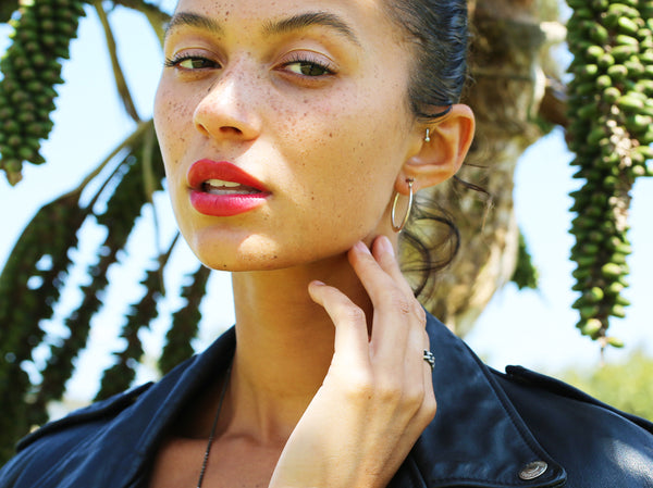 Sterling Silver Lucky Lefty Hoop Red Garnet Earrings